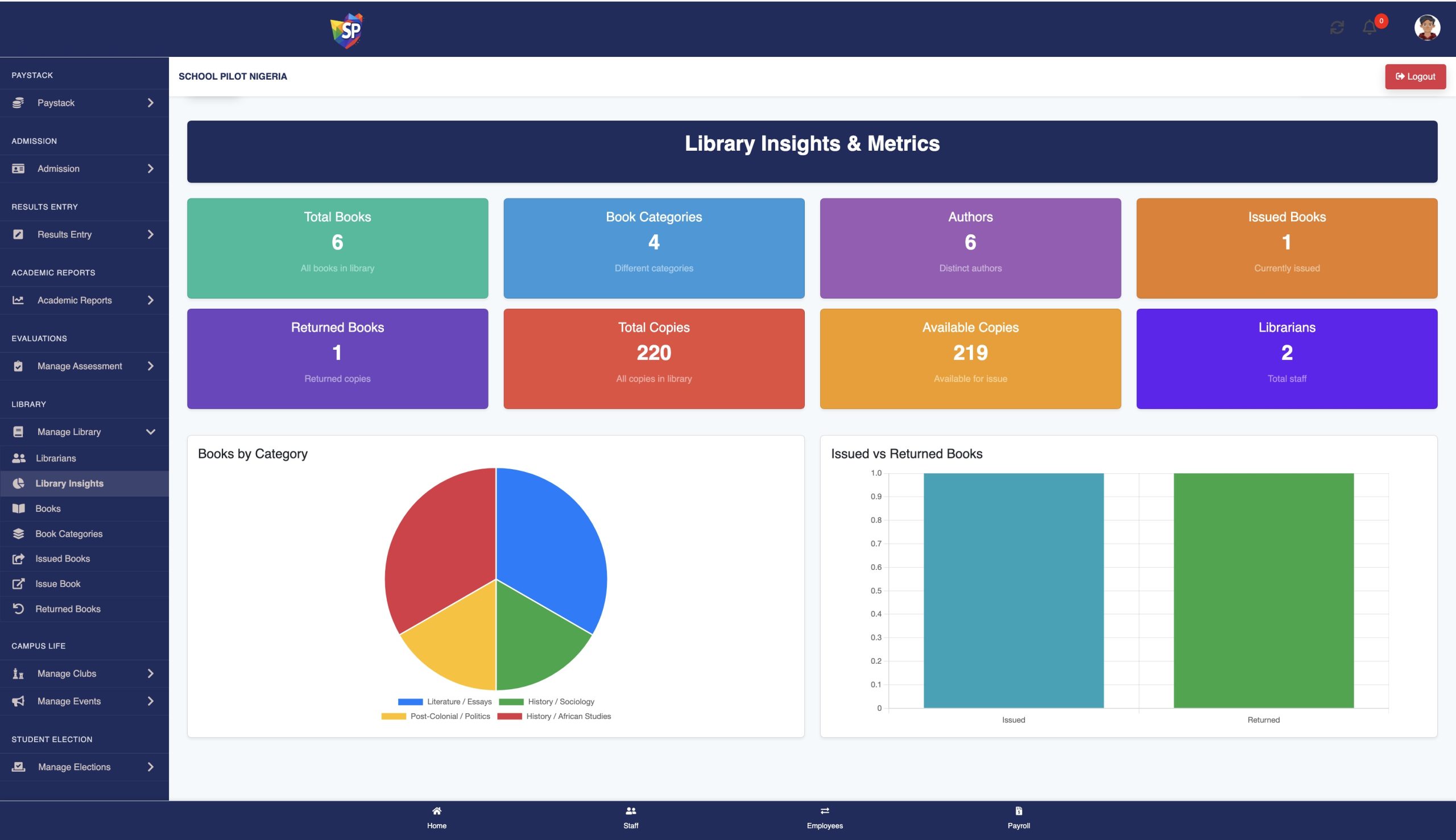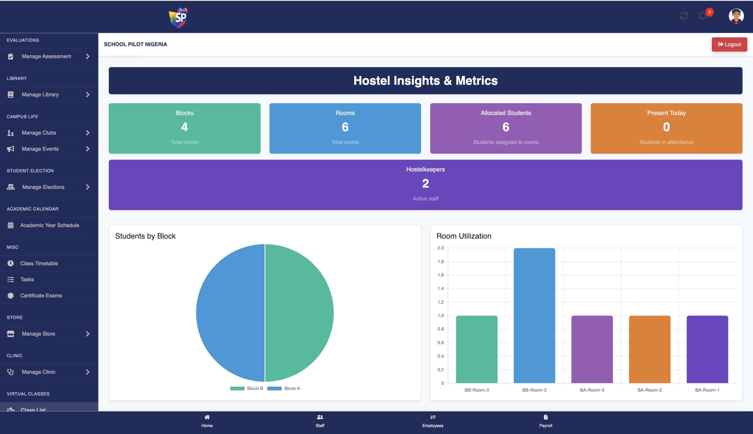 School Pilot includes dedicated modules for Admin, Staff, Students, Parents, and Accountants—each with tailored tools for managing academics, communication, finance, and reporting.